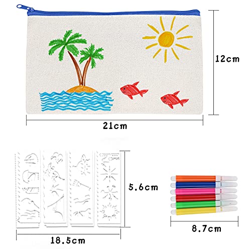 Cieex Astuccio in Tela Bianco fai da te Set, 15pz Astuccio con Cerniera, 6pz Penne Colorate con 8pz Modelli, DIY Sacchetto per Feste, Attività in Classe, Attività in Famiglia