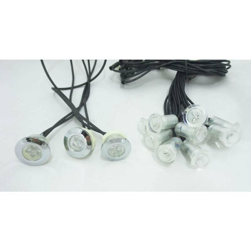 Kit punti luce a led ideale per riprodurre un fantastico effetto di cielo stellato Strutturati in pvc, a scelta tra luce blu, bianca o RGB, con un angolo di apertura di circa 15°. Scheda tecnica: Alimentazione: DC 12V Potenza e consumo: 0,22W cad. 18mA Grado di protezione: IP68 Angolo lunghezza: 15° Cavo cablaggio lunghezza: 15cm Alimentatore venduto separatamente