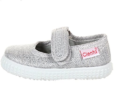 CIENTA - Ballerina Argentata in Tessuto Ecologico Non trattato, con Chiusura a Strappo, Bambina, ragazza-24