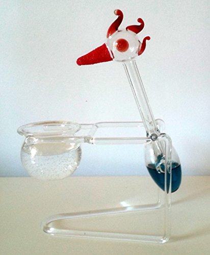 Cifra di oscillazione, beva concludono l'uccello, anatra di oscillazione, altalena figura, statuine, uccello bere-border, sorso picchio, picollo perpetuum mobile, di vetro chiaro e soffiato con la bocca, con blu liquido,con supporto e vetro, altezza circa 12 centimetri, progetto Oberstdorfer Glashütte