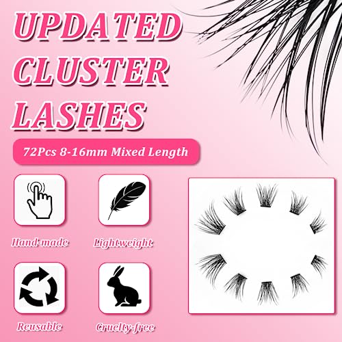 Ciglia Finte Individuali 72PCS D Curl Misto 8-16mm Ciuffetti Extension Ciglia Ciuffetti Naturali DIY Individuali Cluster Volume (24 MIX)