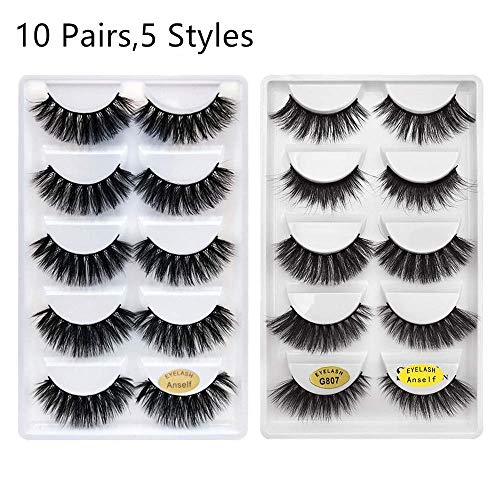 10 paia, 5 stili diversi - ciglia finte Anself, 10 paia di ciglia finte in visone, arcuate, con 5 stili diversi.