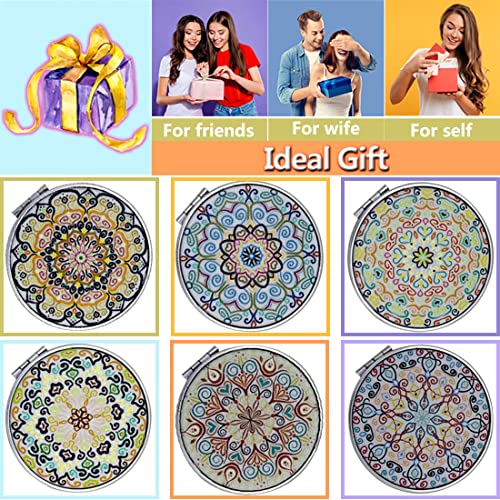 CigyYogy Specchio Ingranditore Compatto Specchietti Di Bellezza Portatili Pieghevoli Tascabili Di per Donne Ragazza Signora Goffratura Mandala Design 6 Pacchi