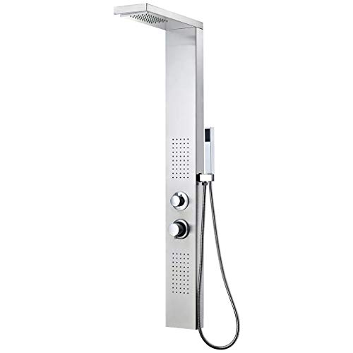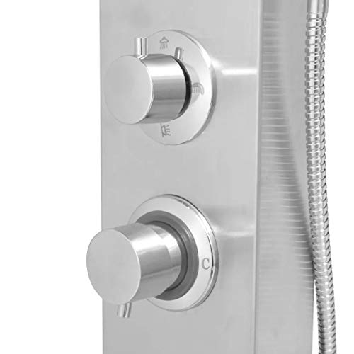 Cikonielf Colonna Doccia in Acciaio Inossidabile,Pioggia,Cascata,Getti Idromassaggio e Soffione Portatile,manopole Portatili Sono cromati,15 x 47 x 130 cm