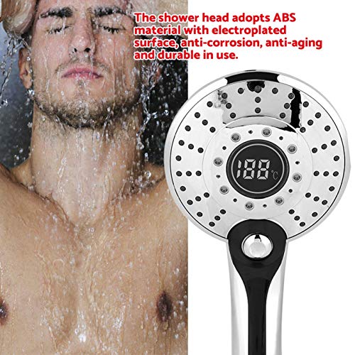 Cikonielf Soffione Doccia a LED 5V Soffione Doccia con Display Digitale in ABS con Controllo della Temperatura a 3 Colori Luce a LED 3 modalità di spruzzatura Argento