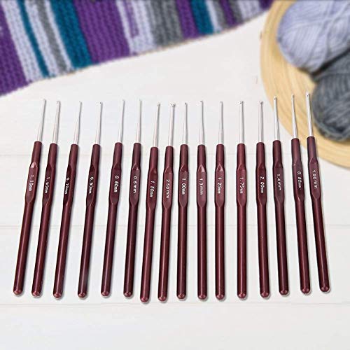 【Set di 16 uncinetti per taglie】 Set di uncinetti tra cui 16 ganci ergonomici, gamme di dimensioni: 0,5 mm, 0,6 mm, 0,7 mm, 0,8 mm, 0,9 mm, 1,0 mm, 1,1 mm, 1,2 mm, 1,3 mm, 1,4 mm, 1,5 mm, 1,6 mm, 1,75 mm, 1,9 mm, 2,0 mm, 2,5 mm. Fornisci molte scelte di cui hai bisogno.