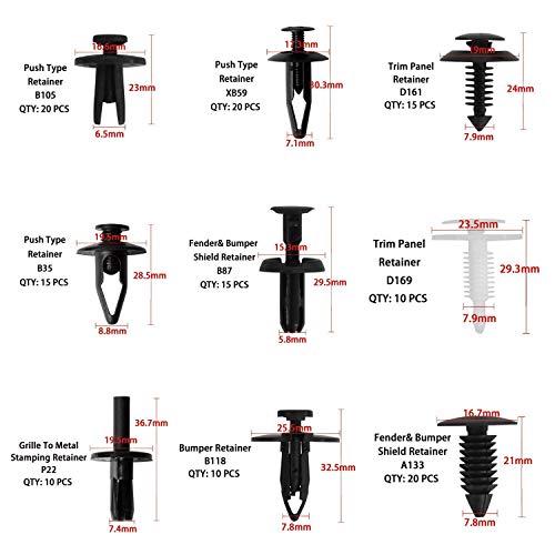 AMPIA VARIETa' DI UTILIZZI: Questi fermagli per carrozzeria sono ampiamente utilizzati per pannelli porta, rivestimenti porta, parafango, paraurti, scudo radiatore, coperchio del motore e sostituzione dei paraschizzi.