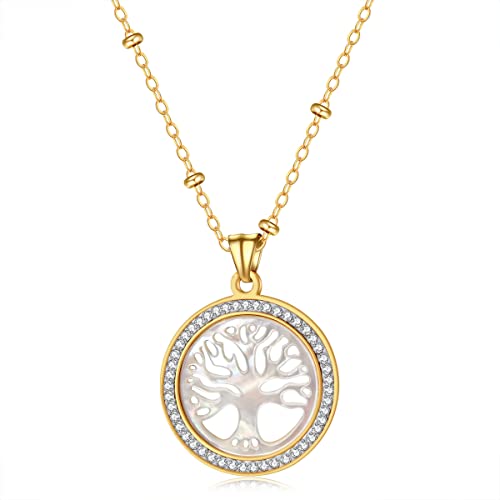 CILIFATAL Collana Albero Della Vita fatto di Conchiglia Gioielli Catenina Acciaio Oro 18k per Ragazze, Fidanzate, Mamma, Nonna, per il Compleanno/Festa della Mamma