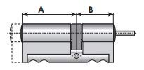 CILINDRO DECENTRATO CON 5 CHIAVI PADRONALI CODOLO-CHIAVE DI SICUREZZA-NEOS PER PORTA BLINDATA-UNIVERSALE MARCA ATRA-DIERRE.MISURE A=40mm.B=30mm. A+B=70mm.Sistema di cifratura a 6 perni in acciaio inox