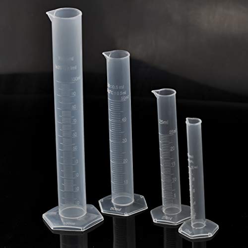 Cilindro Graduato di Plastica 10ml 25ml 50ml 100ml con 1 bacchetta di vetro e 1 spazzola per Laboratorio, Chimica