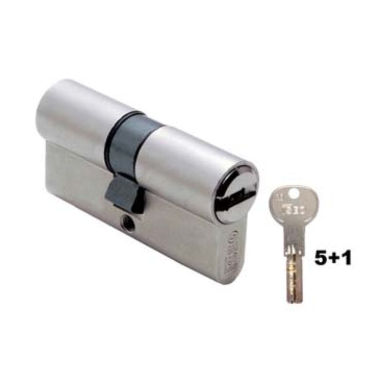 Mm.120 decentrato (40x80) (82r6040809c5) corpo in ottone nichelato a 6 spine - spina antitrapano nel corpo cilindro - camma din 30° sporgente e vite mm.65 - 5 chiavi + cantiere Categoria merceologica: Cilindri di sicurezza - Sicurezza - Cilindri per serrature
