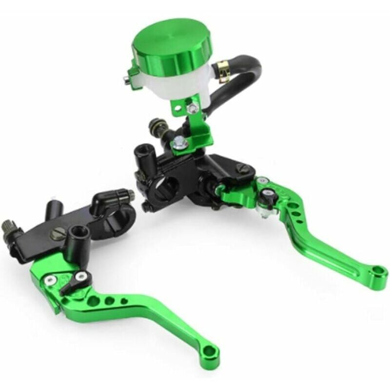 frizione con leve regolabili e serbatoio del fluido. Leve sono regolabili. Leve corte a due dita. Regolazione della leva a 6 posizioni chiusure in acciaio inox. Perno lavorato di precisione foro per garantire una perfetta aderenza. Bulloneria in acciaio inossidabile. Freno e frizione idraulici. Le leve sono in alluminio e anodizzate dello stesso colore del coperchio della leva. Serbatoio del liquido dei freni. Specifiche: Colore: nero, blu, rosso, argento, oro, verde, arancione, titanio Dimensione foro: 14 mm Materiale: las Leve sono in alluminio e plastica tappo serbatoio liquido freni Manubrio impugnature, leve e amp;