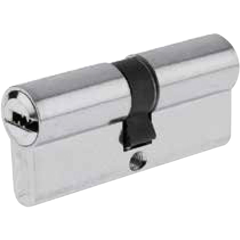 Cilindro profilato doppio serie 'y2s' mm 35+10+35 = 80 (40+40) Profilo europeo, chiave piatta reversibile. Corpo in ottone a finitura nichelata opaca. Frizionato: sistema di emergenza che permette l'apertura della porta tramite chiave, anche nel caso in cui, dall'altro lato del cilindro, un'altra chiave è inserita al suo interno. Spine anti trapano su corpo e barilotto, 6 perni, vite di fissaggio M5x70 inclusa. Dotazione cinque chiavi in ottone nichelato. Brevettato. mm 35+10+35 = 80 (40+40) Categoria dell'articolo: Ferramenta - Cilindri e accessori