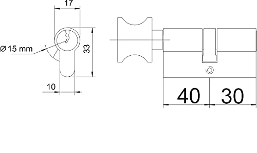 Cilindro profilato con pomello, in ottone (K 40/30 mm)
