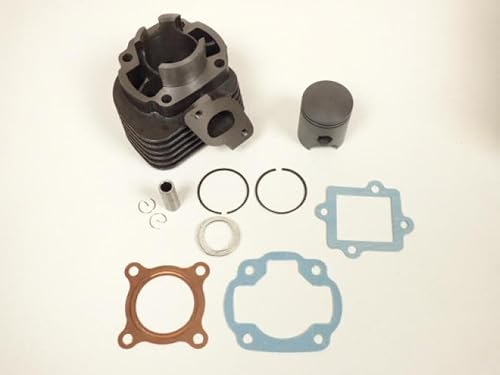Kit cilindro pistone ghisa nuovo. Questo kit comprende cilindro, pistone, segmenti, clip e asse del pistone diametro 12 mm, guarnizione del tubo di scarico, base inferiore del cilindro, testata e tubo di aspirazione. L'asse dei perni del cilindro e di 50 mm. Adatto solo per veicoli dotati di un asse del pistone diametro di 12 mm. Fornito come da foto.
