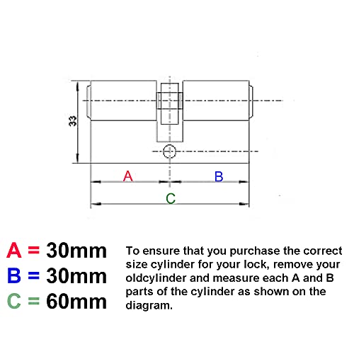 Cilindro della Serratura antifurto, Cilindro della Serratura in Rame Cilindro della Serratura della Porta, Nucleo della Serratura,Cromo Satinato,30/30 (60mm),Con 3 chiavi