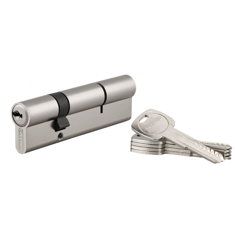 Thirard - Cilindro della serratura 30 x 70 mm 5 chiavi - 17792 - Profilo europeo in ottone - Meccanismo a 6 pin contro il picking - Protezione contro la perforazione con ago e 1° perno in acciaio temprato - Punta antiribaltamento - Funzione di emergenza Bit disinseribile: può essere aperto dall'esterno anche se una chiave è lasciata all'interno (eccetto in forma scatolata) - 5 chiavi piatte reversibili in ottone nichelato con scheda di proprietà inclusa Caratteristiche tecniche: Finitura: nichel satinato, ottone Tipo di serratura: a doppia entrata Tipo di chiave: Chiave reversibile Dimensioni: 30 x 70 mm Brevetto: brevettato e protetto 10 anni di garanzia