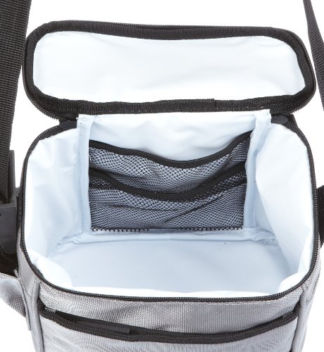 Robusto poliestere, rivestimento isolante in schiuma, con tracolla regolabile, chiusura lampo, 2 tasche interne e 1 tasca esterna.