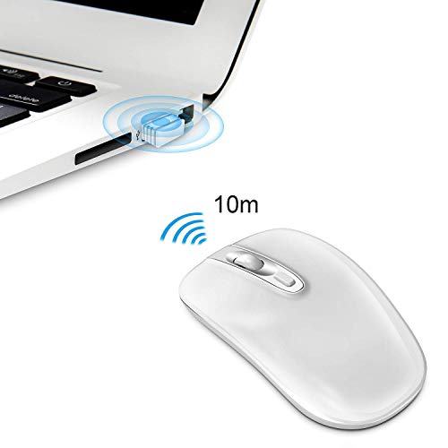 Cimetech Mouse wireless ricaricabile,mouse 2.4G e Bluetooth per laptop (White)