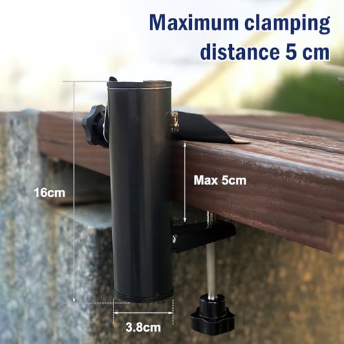 【Adatto per la Maggior Parte Degli Ombrelli】 Questo morsetto per ombrelloni può essere regolato per diversi spessori di ombrellone ed è adatto per ombrelli piccoli, medi e grandi. Ideale per l'uso su qualsiasi superficie angolare, come ponti, gradinate, poppe, barche, recinzioni, ecc.