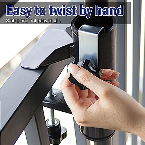 【Non è Necessario Forare】 Il supporto per ombrellone non richiede attrezzi o forature per una rapida installazione e rimozione. È possibile fissare rapidamente e facilmente il supporto per ombrellone a ringhiere di balconi fino a 5 cm di spessore, ruotando la vite per regolare la dimensione del foro!