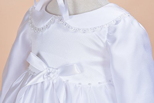 Cinda Bambino Maniche Lunghe in Raso Battesimo Abito Lungo e Cofano Motore Bianco 9-12 Mesi