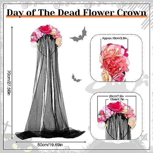 Bel design: il nostro cerchietto per Giorno dei Morti presenta un design bello e autentico, con fasce floreali in rosa, la fascia messicana con velo è ideale per qualsiasi celebrazione del Giorno dei Morti;