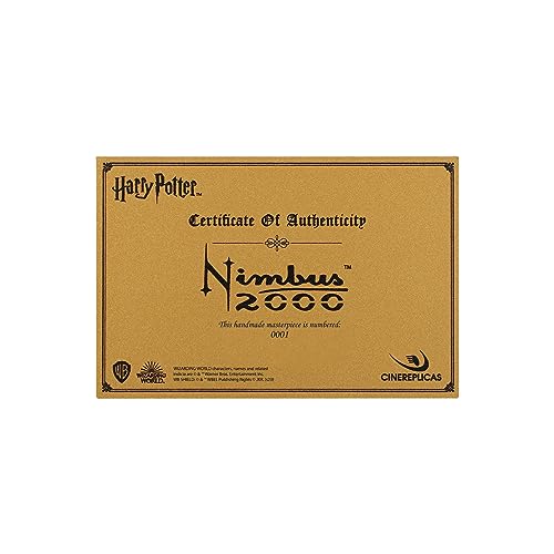 VIVERE LA MAGIA DI HARRY POTTER: Autentica e pregiata replica in scala 1:2 della scopa Nimbus 2000 vista nei film di Harry Potter. Disponibile in copie limitate in tutto il mondo, ogni scopa è numerata e viene fornita con una placca di metallo che certifica l'autenticità del prodotto, oltre a una spia d'oro. Questa replica in miniatura cattura appieno ogni dettaglio della scopa originale ed è perfetta per essere esposta in piccoli spazi a casa o in ufficio.