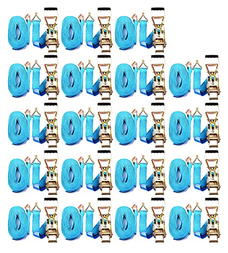 20x Cinghia di ancoraggio con ganci da 8 m a 5000 kg, fino a 5,0 t / 5000 daN, cinghia a cricchetto in due parti blu, 50 mm Larghezza della cintura