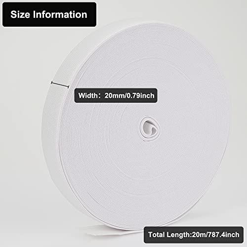 Cinghia Elastica, 20M*2CM Elastico per Cucito Bianco, Banda Elastica per Cucito, per Sartoria, Cucito, Alterazione, Montaggio, Nastro per Parrucche e Artigianato Fai-da-Te