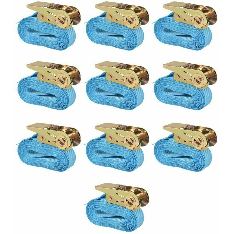 Queste cinghie di fissaggio a cricchetto per impieghi gravosi possono essere generalmente utilizzate per fissare o stringere il carico per il trasporto o lo stoccaggio. Le cinghie forti e robuste sono realizzate in poliestere di alta qualità e hanno una capacità di carico di 0,8 tonnellate ciascuna. Le cinghie di ancoraggio sono state prodotte per soddisfare la norma europea EN-12195-2. Inoltre, sono dotati di cricchetti a sgancio rapido facili da usare per tenerli stretti durante il trasporto e garantire che i carichi rimangano in posizione. La consegna include 10 cinghie di ancoraggio a cricchetto. Colore: blu Materiale: poliestere Lunghezza: 4 m Larghezza: 25 mm Capacità di ancoraggio: 0,8 tonnellate ciascuna Conforme alla norma europea EN-12195-2 La consegna include 10 cinghie a cricchetto