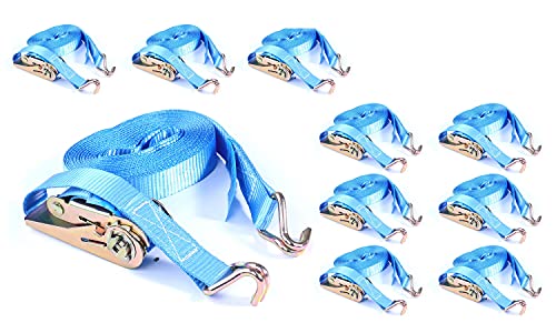 10x Cinghia di fissaggio con gancio 6 m a 800 kg / 800 daN, cinghia a cricchetto in due pezzi blu, 25 mm Larghezza della cintura