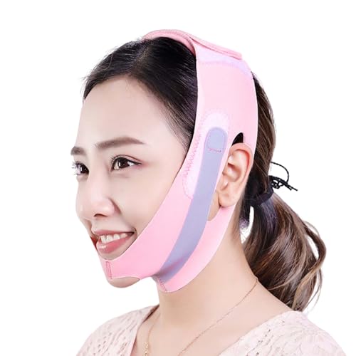 FACE LIFT: Invecchiando, il nostro contorno del viso perde forma e definizione, il design dell'orecchio a vista di questo cinturino fisico per sollevare il viso non schiaccia l'orecchio può migliorare il doppio mento, evitare il cedimento delle guance, sottogola traspirante a compressione con supporto medio per il collo Sollevare il cinturino della cintura con la linea del viso V, rendere il viso più piccolo, levigato e aggiungere solide linee facciali