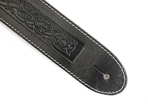 Cinghia Tracolla per Chitarra - Nero, Pelle Vera, Progettazione Irlandesa Celtico Cane - per la Chitarre Acustiche, Elettriche e Basso