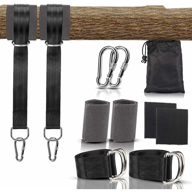 Che tipo di altalene è adatto questo kit di cinghie per alberi Amaca, Swing spinner, swing a disco, altalene a nastro, altalene pneumatiche, altalene classiche, altalene da giardino, altalene per bambini, altalene per terrazze. Il vantaggio del nostro kit di oscillazione sospeso: Resistente agli agenti chimici. Facile pulizia e manutenzione. Supporta fino a 500 kg.< br/> 100% impermeabile e facile da pulire e mantenere. nastro largo 5 per evitare danni ai modelli sospesi. Caratteristiche: Materiale: poliestere. Peso: 500 kg Dimensioni: 158 x 5 per cinturino. Dimensione moschettone: 9 mm (larghezza). Contenuto della consegna: 2 elementi di fissaggio a battente. 2 moschettoni in acciaio inossidabile. 2 tappetini protettivi per albero. 1 sacchetto portaoggetti. Punte: 1. Scegli l'albero più piatto e più forte del possibile per ridurre l'attrito delle cinghie. 2. Lasciare che i due anelli D siano appesi il più possibile su una cinghia per aumentare la durata dell'anello D. 3. Assicurarsi