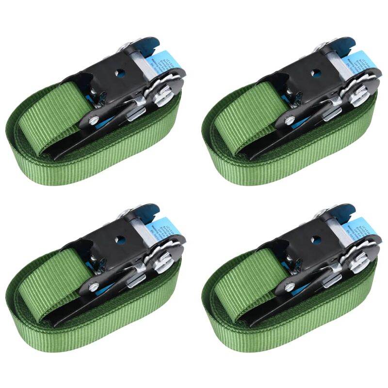 Queste robuste cinghie di fissaggio a cricchetto sono ideali per fissare i carichi per il trasporto o lo stoccaggio in modo rapido e sicuro. Queste cinghie di ancoraggio sono realizzate in poliestere, che le rende robuste e resistenti, garantendo un utilizzo per gli anni a venire. La cinghia ha una capacità di ancoraggio di 400 kg e un limite di rottura di 800 kg. Le cinghie di ancoraggio sono state prodotte secondo la normativa EN 12195-2. Inoltre, queste cinghie sono dotate di cricchetti che le rendono facili da utilizzare. Specificazioni: Colore: Verde Materiale: Poliestere Lunghezza: 6 m Larghezza: 25 mm Capacità di ancoraggio: 400 kg ciascuna Limite di rottura: 800 kg ciascuna Secondo normativa EN 12195-2 La consegna include: 4 Cinghie di ancoraggio a cricchetto SKU: 148893