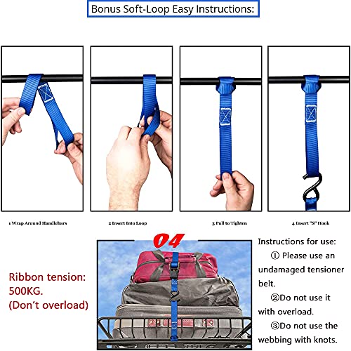 Materiali premium: la confezione da quattro cinghie a cricchetto resistenti con impugnatura in alluminio è realizzata con fettuccia in poliestere superiore e DUREVOLE che non si strappa o si allunga, resistente al sole e non si sfalda quando è bagnata. La lavorazione è precisa e affidabile .