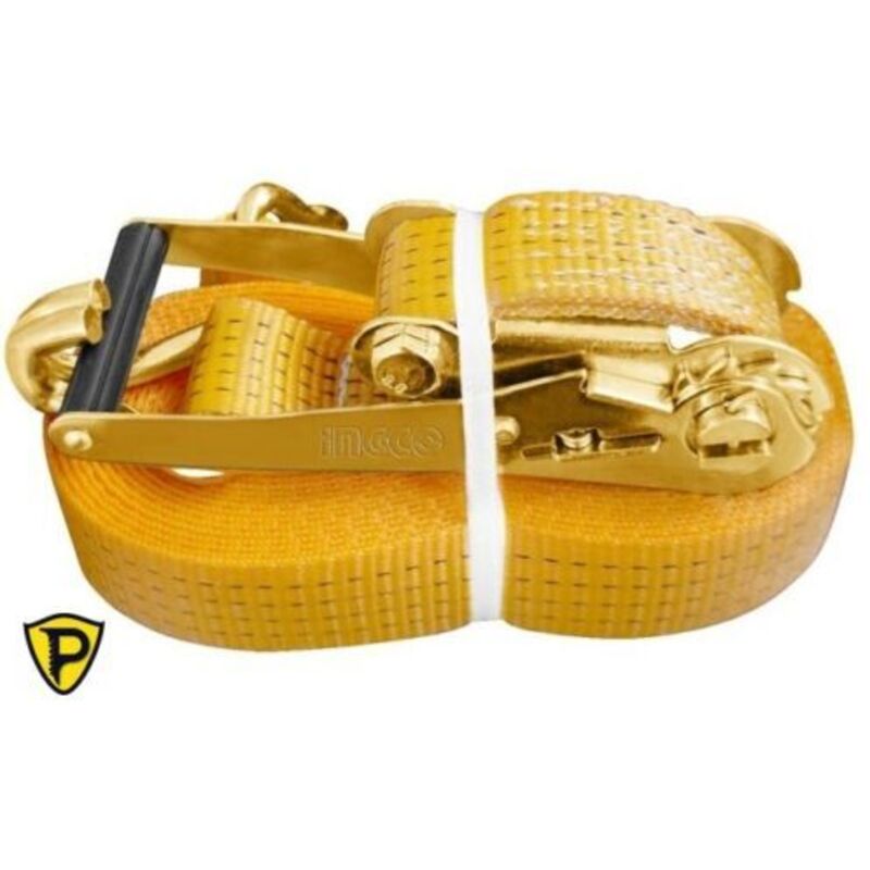 Cinghia a cricchetto Ingco 10 metri x 50 mm e una portata di 3 o 4 Tonnellate a scelta. Utili al fissaggio di oggetti durante il trasporto o la messa in sicurezza di strutture. INGCO HRSP3101 Cinghie a cricchetto 10mtx50mm Carico: 3T Lunghezza: 10m Larghezza: 50mm Con cricchetto e ganci a doppio j INGCO HRSP4101 Cinghie a cricchetto 10mtx50mm Carico: 4T Lunghezza: 10m Larghezza: 50mm Con cricchetto e ganci a doppio j