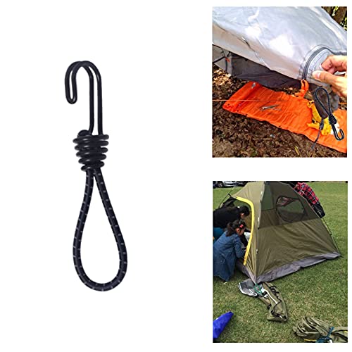 Cinghie elastiche con ganci, colore nero, 2 corde elastiche corte con ganci da 16 cm, corda elastica riflettente per telone, baldacchino, tenda da campeggio