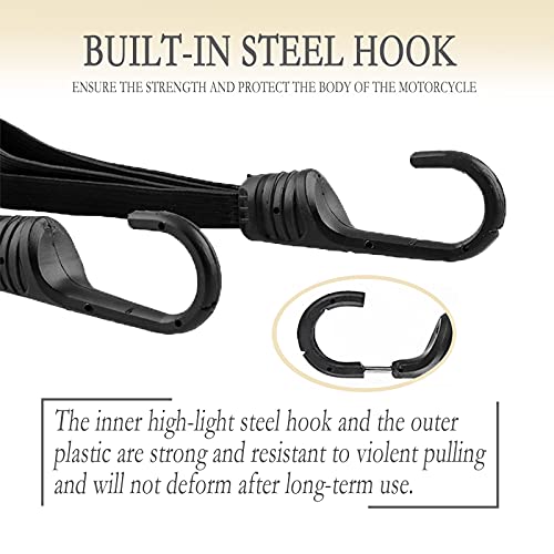 Cinghie Portapacchi Moto Elastica Corda Bagaglio Cinghia Corde Casco Elastiche Bicicletta Portacasco Cinghie Corda Carico Multiuso con Ganci Regolabile 2 Pezzi Nero 60cm