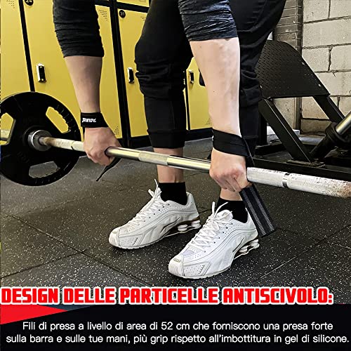 Cinghie Sollevamento Pesi, Fasce Polsi Palestra Lifting Straps Palestra Cinghie Palestra 62 cm con impugnatura antiscivolo per manubrio, Per Bodybuilding e Powerlifting