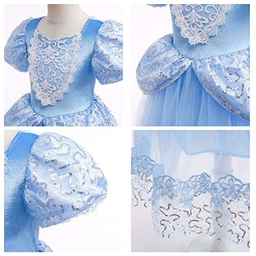 CinheyU Cenerentola Carnevale Costumi per Bambine Cinderella Principessa Compleanno Abiti Ragazze Natale Halloween Cosplay Cerimonia Festa Tulle Vestito con Accessori 2-3 anni