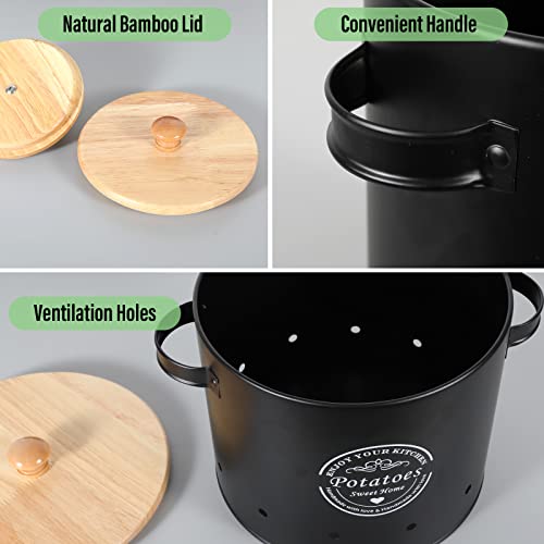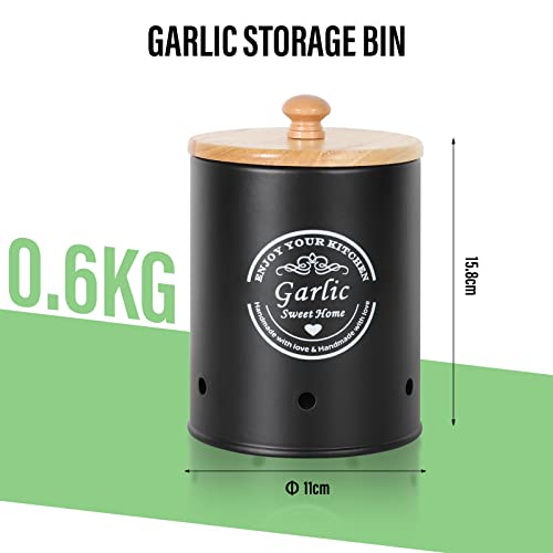 Cinnani Set di 3 Contenitori per Patate, Cipolle, Barattoli da Cucina con Coperchio in Legno, Porta Aglio (Nero)
