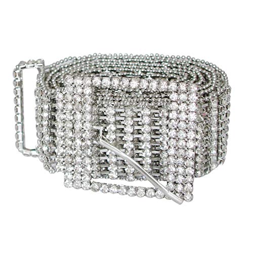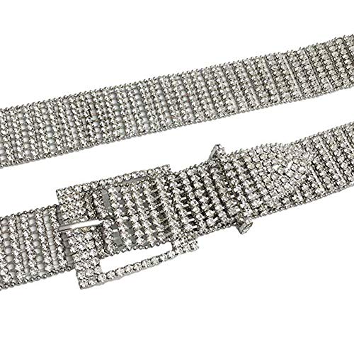 9 file di grandi strass con due piccole catene di perline di metallo nelle due dimensioni della cintura che rendono la cintura di cristallo più stabile