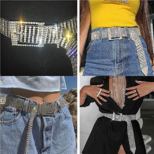 Cintura in argento con strass di cristallo Cintura a catena scintillante Diamante Cinturino alla moda Accessorio per jeans da donna
