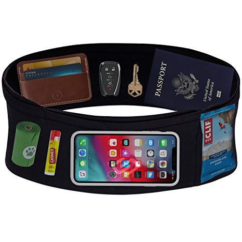 Cintura da Corsa VersaMax Sporteer, Cintura da Viaggio, Marsupio per Esercizi - Grandi Tasche di Sicurezza per Tutti i Telefoni Cellulari, Denaro, Passaporti e Altri Oggetti (Nero, S)