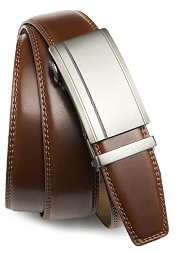 Cintura a cricchetto da uomo in pelle, con fibbia a scorrimento automatico, da tagliare alla misura esatta, 3,5 cm B. Fibbia Quadrata W Marrone Cintura XXX-Large
