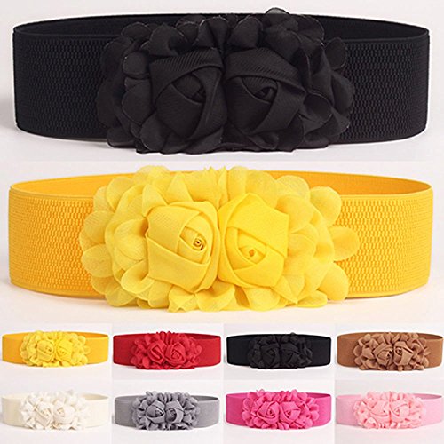 Cintura da donna e ragazza elasticizzata, con fibbia con motivo floreale, larga, Grigio chiaro, M