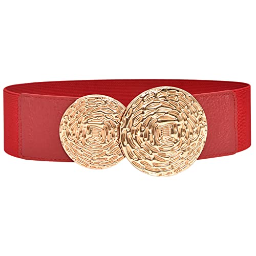 Cintura elastica da donna per abiti Cintura in pelle nera con cintura elastica vintage, Rosso, Taglia unica