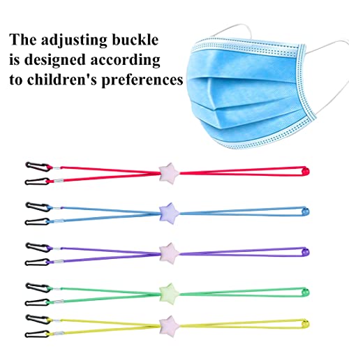 【Design carino e materiale durevole】 La fibbia di regolazione è progettata per le preferenze dei bambini, maschera a forma di stella con 2 clip in gomma. Per i bambini, i ganci anti-perdita di gomma sono più sicuri del metallo. Le cinghie di maschera perfette sono perfette per studenti, studenti, ragazzi, ragazze ecc.